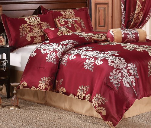 11Pcs Queen Isabel Bedding Bed in a Bag Set Burgundy Review