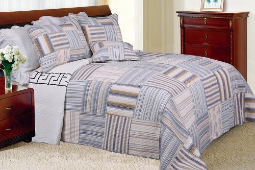 [Kevin] 100% Cotton 2PC Vermicelli-Quilted Striped Patchwork Quilt Set (Twin Size) Review